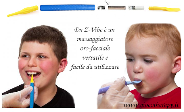 Giocotherapy vi presenta il DnZ-Vibe e Z-Grabber™ due apparecchi senso-motori orofacciali progettati e realizzati interamente negli Stati Uniti, appositamente per l'utilizzo nel l'ambito della Oral Motor Therapy, in grado di fornire una vibrazione oro-sensoriale dolce di stimolazione ed esplorazione delle labbra, guance, palato duro, velo palatino e lingua.